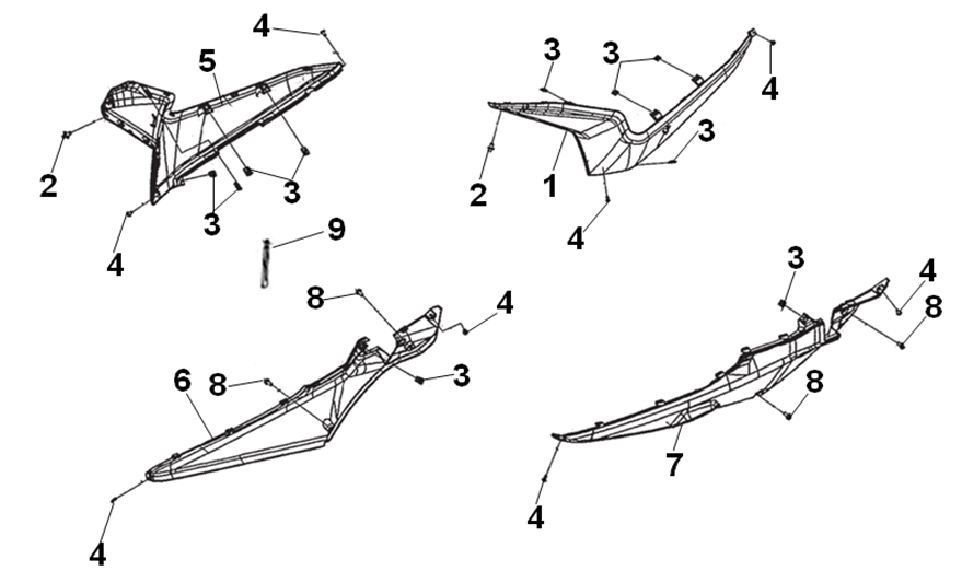 Подбор запчастей SYM JoyRide 300 LJ30W1-EU Рама Облицовка боковая