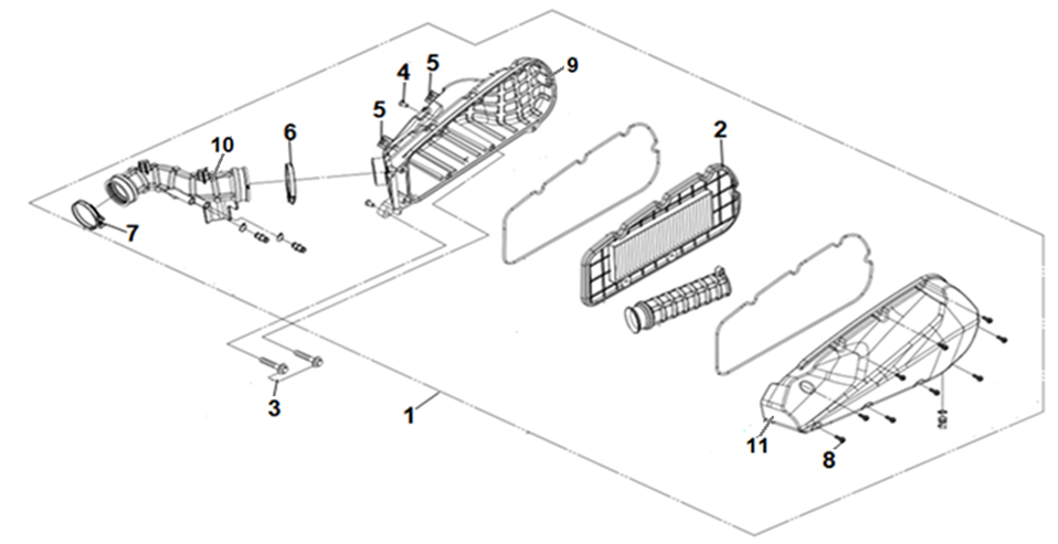 Подбор запчастей SYM JoyRide 300 LJ30W1-EU Рама Воздушный фильтр