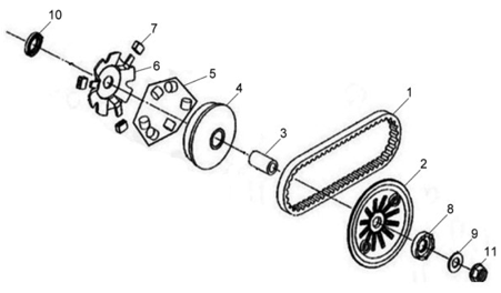 Подбор запчастей SYM Allo 50 (AJ05W5-6-A9F) Двигатель Вариатор