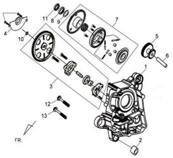 Подбор запчастей SYM Allo 125 Двигатель Правая половина картера и масляный насос