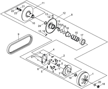 Подбор запчастей SYM CityCom 300 (LH30W-6) Двигатель Сцепление