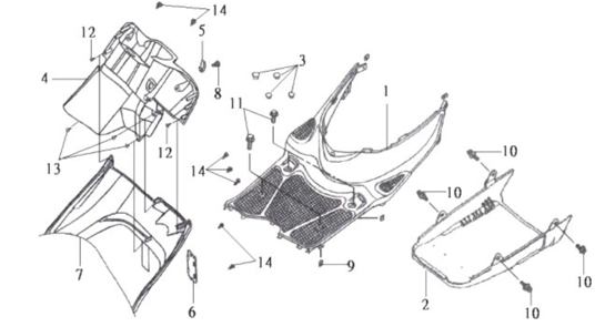 Подбор запчастей SYM DD50 (FT05V3-8) Кузов/Электрика Облицовка пола