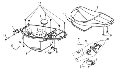 Подбор запчастей SYM Jet 4 125 (AD12W1-6 ANA) Кузов/Электрика Багажное отделение