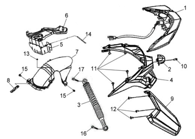 Подбор запчастей SYM Jet 4 125 (AD12W1-6 ANA) Кузов/Электрика Задняя облицовка