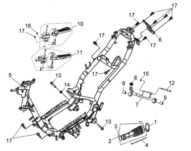 Подбор запчастей SYM Jet 4 125 (AD12W1-6 ANA) Кузов/Электрика Рама