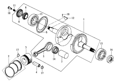 Подбор запчастей SYM JoyRide 200 (LA18W9-6) Двигатель Коленвал