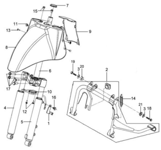 Подбор запчастей SYM Mio 50 (HU05W-T) Кузов/Электрика Траверса / Перья