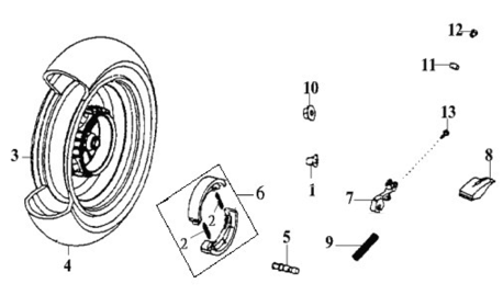 Подбор запчастей SYM RS 125 (HS12W2-6) Кузов/Электрика Заднее колесо