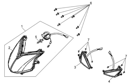 Подбор запчастей SYM Symphony SR-50 (AZ05W1-T) Кузов/Электрика Фара / Поворотники