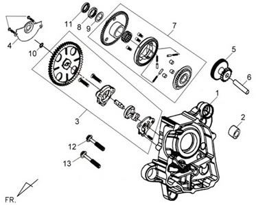 Подбор запчастей SYM Symphony SR-125 (AZ12W1-T) до 2017 Двигатель Правая половина картера