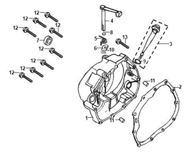 Подбор запчастей SYM XS 125-K Двигатель Правая крышка картера