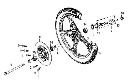 Подбор запчастей SYM XS 125-K Кузов/Электрика Переднее колесо