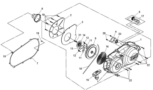 Подбор запчастей SYM ATV 300 (UA30A-6) Двигатель Крышка вариатора