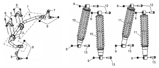 Подбор запчастей SYM ATV 600 (UA60A-6) Кузов/Электрика Задние стабилизаторы и перед./задние амотризаторы