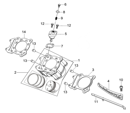 Подбор запчастей SYM ATV 250 (UA25A-6) Двигатель Цилиндр в сборе
